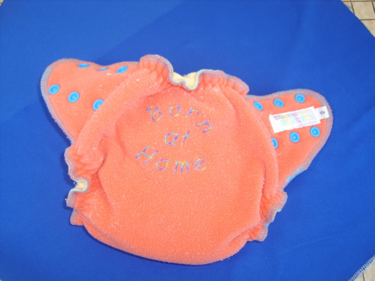 Tykie Diapers sz Small "Born at Home" AIO. Melon colored fleece cover with snap in doubler, yellow fleece inside and on doubler, kitten print on doubler. Free from stains, rips, holes, all snaps are in working condition, etc. Purchased used from a MDC mama, my use has been minimal, 1 month in large stash. Asking $15plus postage