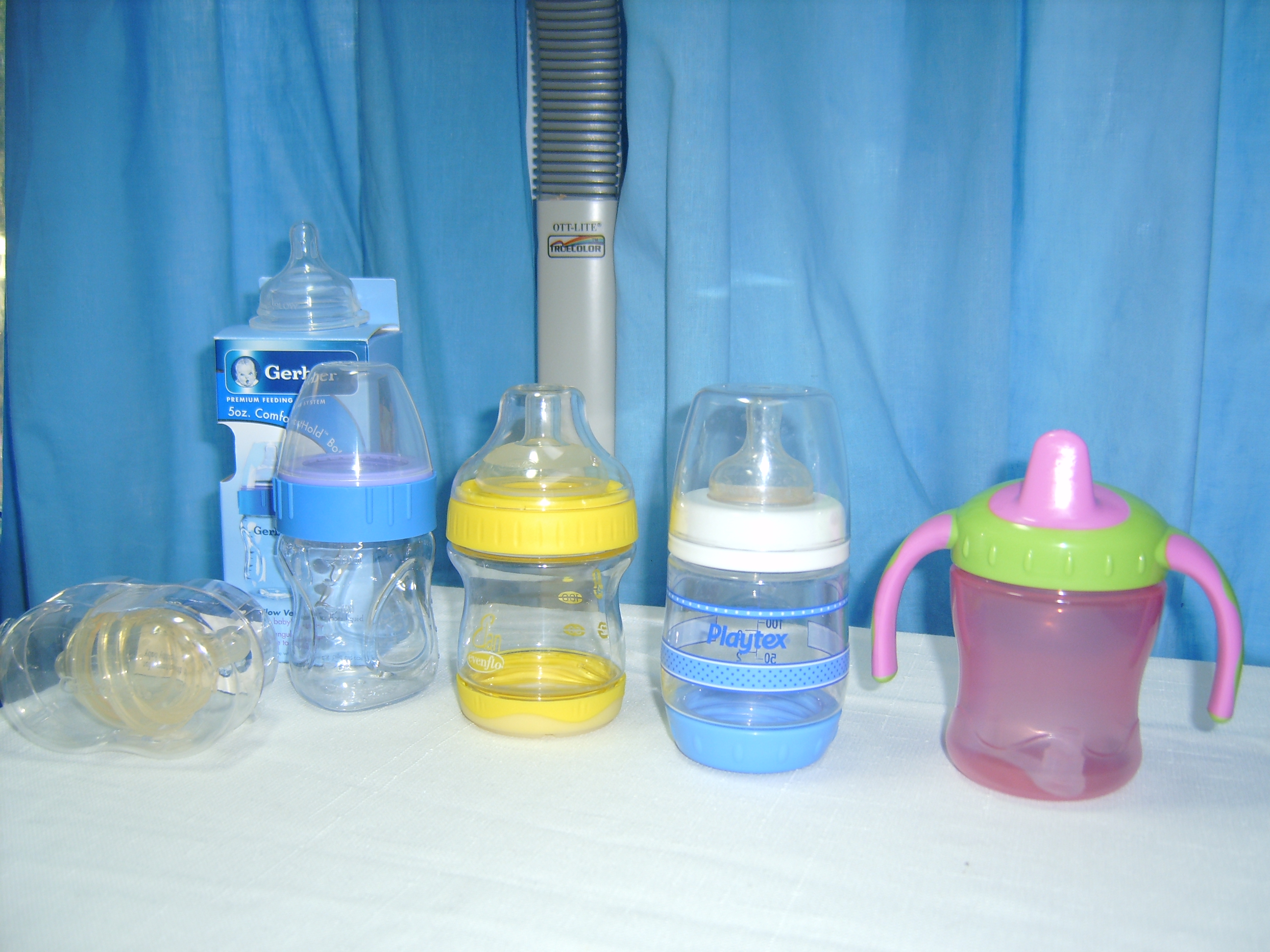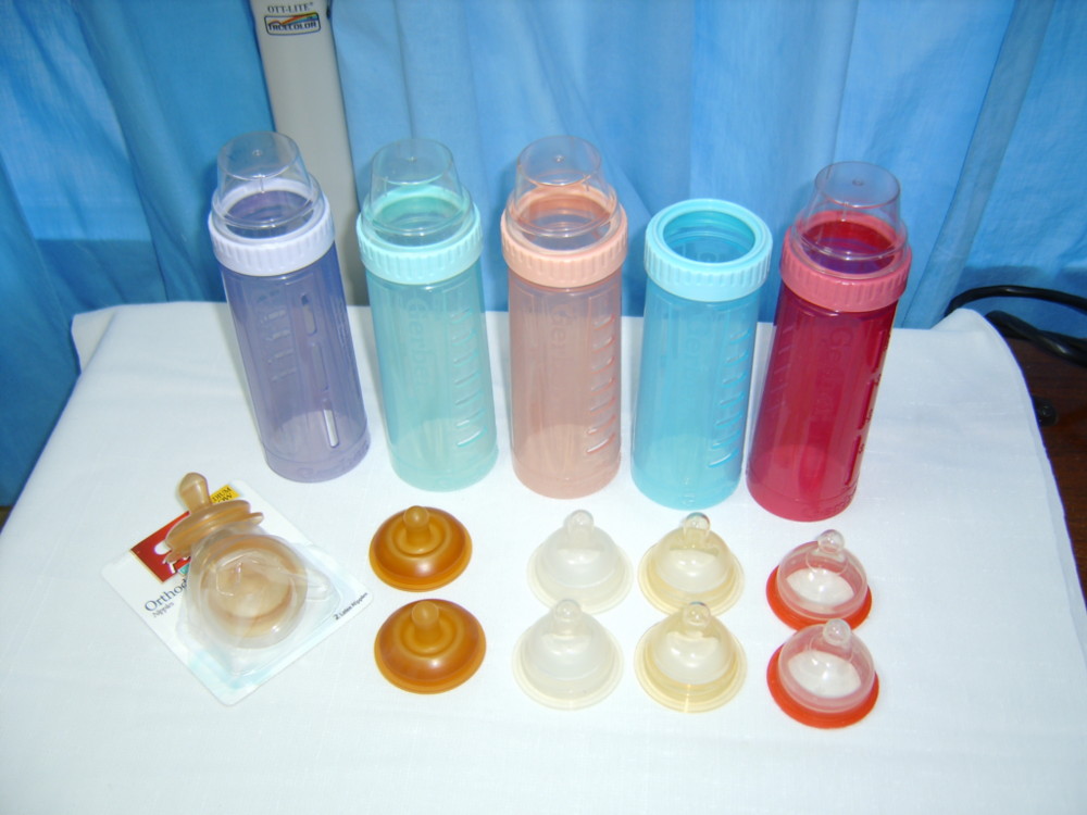Barely used Gerber "comfort hold", tried once, baby didn't like it. Elan, Playtex and 1 Playtex cup. A great collection if you don't know what your baby might like, might not like.